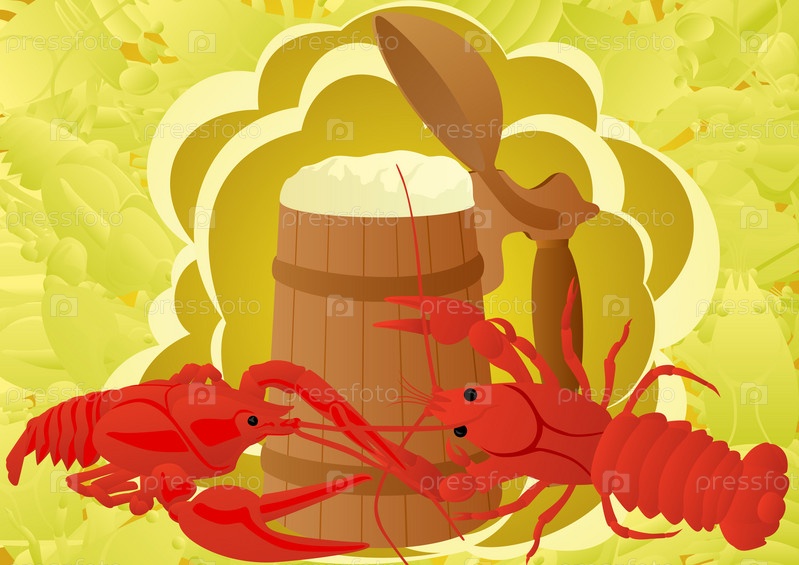 Деревянная кружка пива с раками