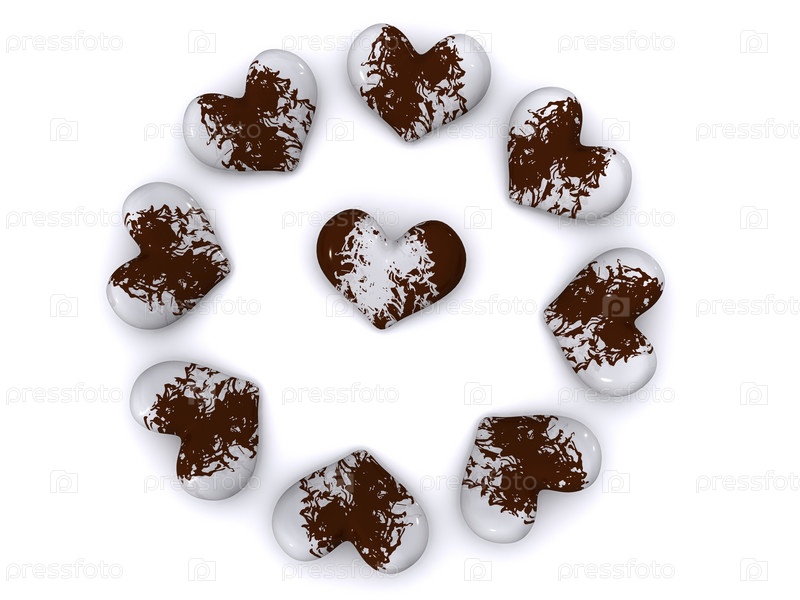 Сердца, выложенные в круг. 3D