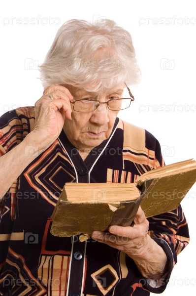 Пожилая женщина читает книгу