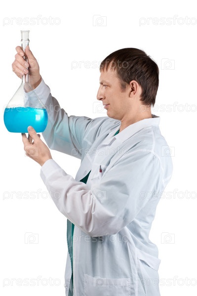 Портрет ученого, проводящего химическое исследование, на белом фоне