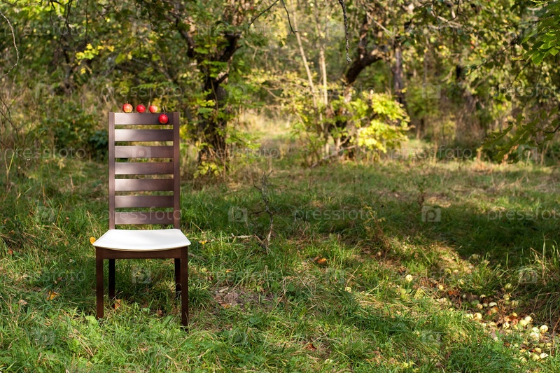 Деревянный современный стул в летнем саду