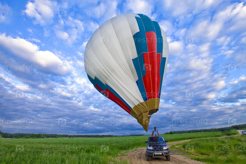 Воздушный шар и автомобиль в поле
