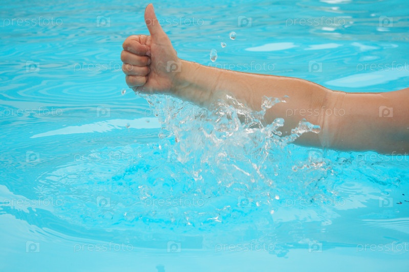 Рука показывает большой палец вверх в бассейне