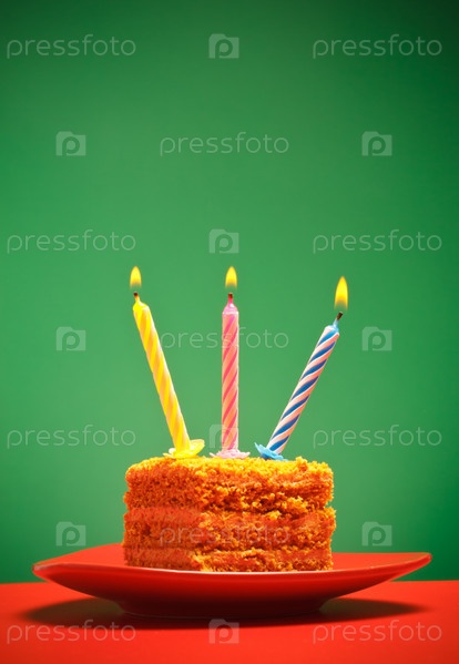 Кусочек тортика с тремя свечками