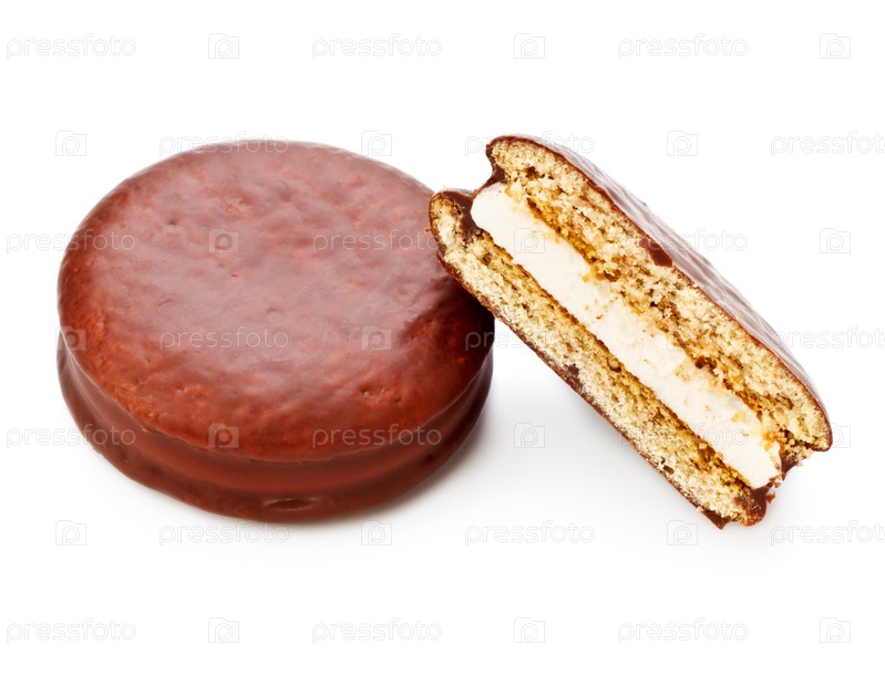 Шоколадное печенье в разрезе на белом фоне