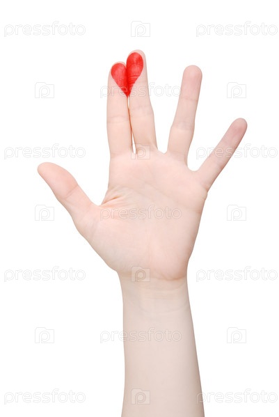 Красное сердце нарисовано на пальцах, изолированных на белом фоне