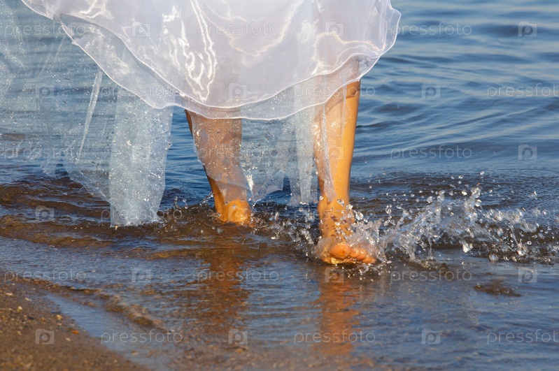 Невеста гуляет по пляжу