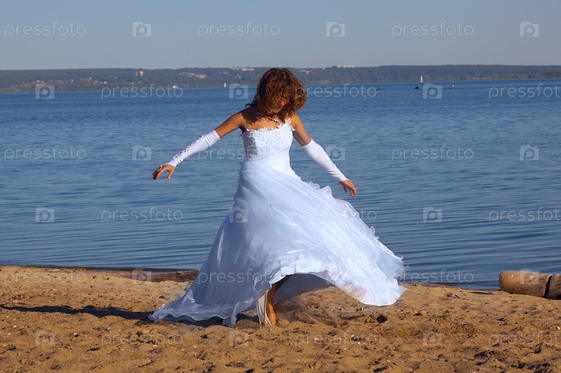 Счастливая невеста на пляже