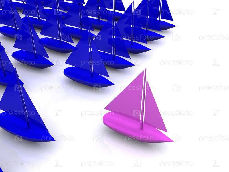 Сирень и синие корабли на белом фоне, 3d