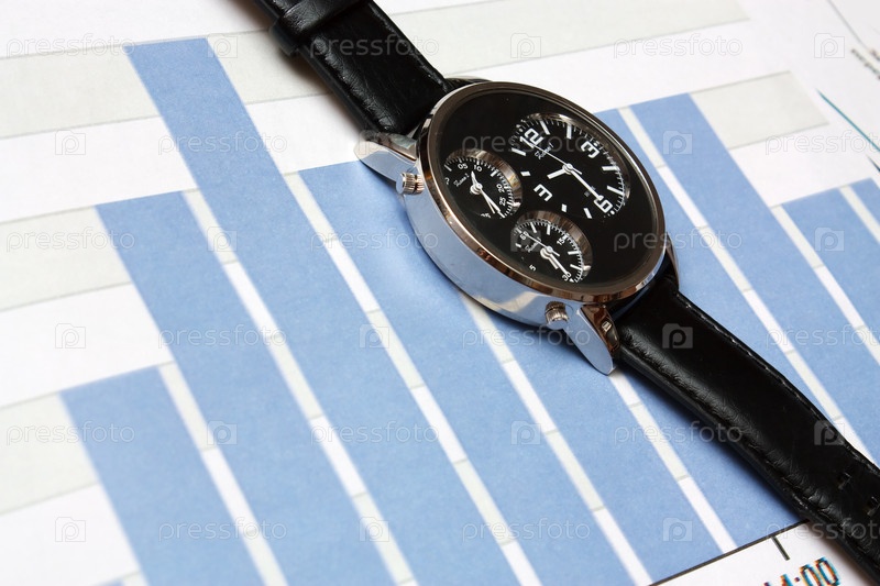 Наручные часы на фоне диаграммы