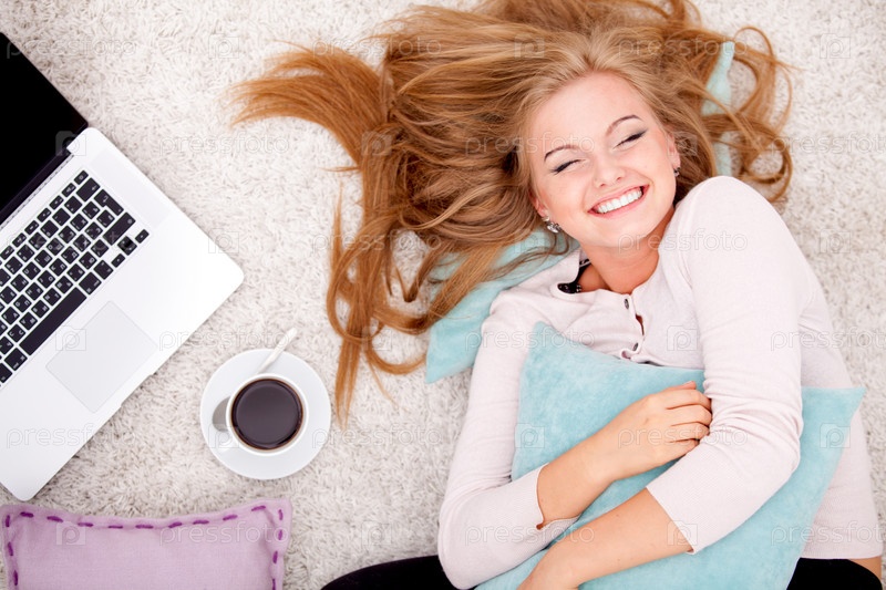 Вид сверху, женщина лежит на полу