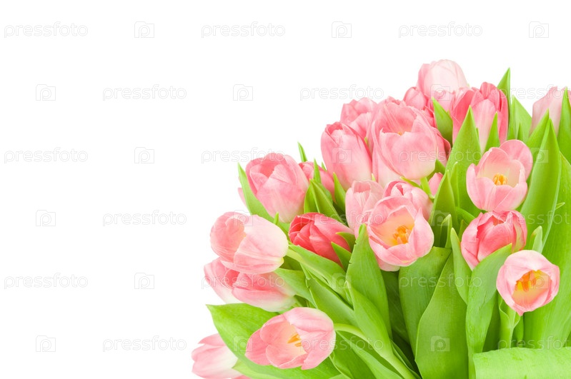 Букет розовых тюльпанов, изолированный на белом фоне