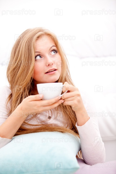 Женщина пьет кофе или чай