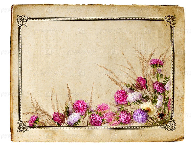 Букет из осенних цветов на старой пожелтевшей бумаге