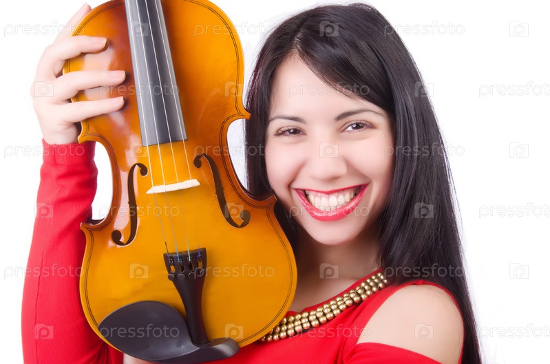 Девушка со скрипкой на белом фоне