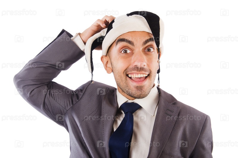 Бизнесмен-клоун, изолированный на белом фоне
