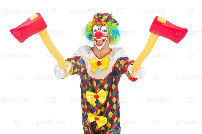 Клоун с топором, изолированный на белом фоне