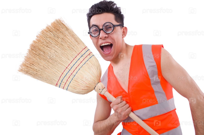 Смешной дворник, изолированный на белом фоне