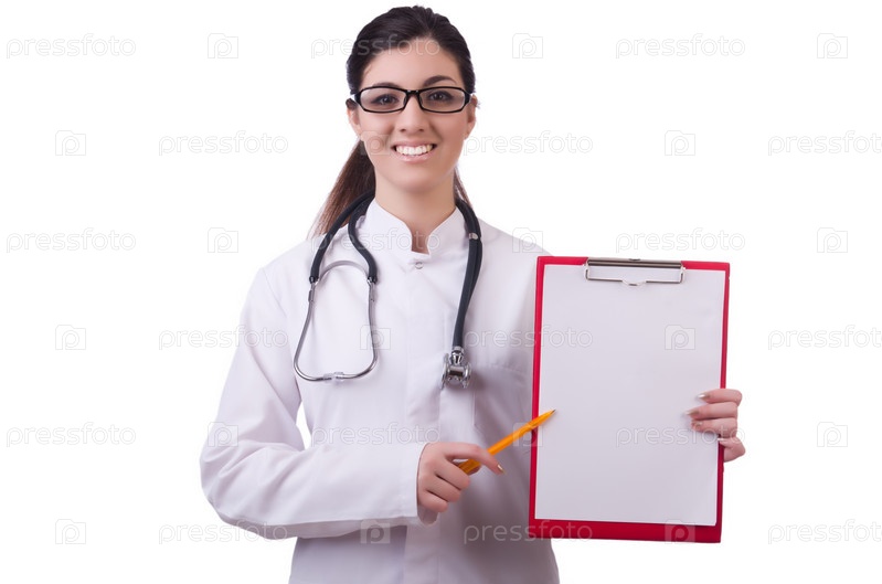 Женщина-врач, изолированная на белом фоне