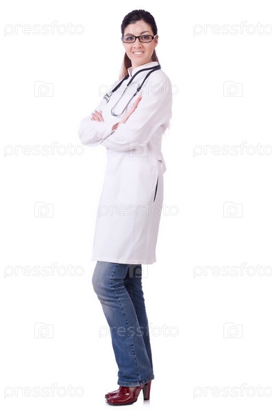 Женщина-врач, изолированная на белом фоне
