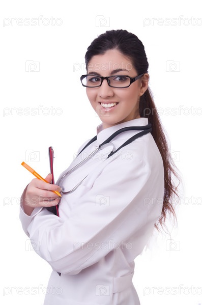 Женщина-врач, изолированная на белом фоне
