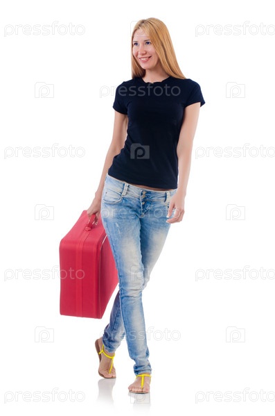 Женщина готовится к отдыху на белом фоне