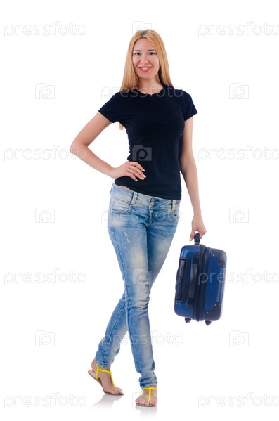 Женщина готовится к отдыху на белом фоне