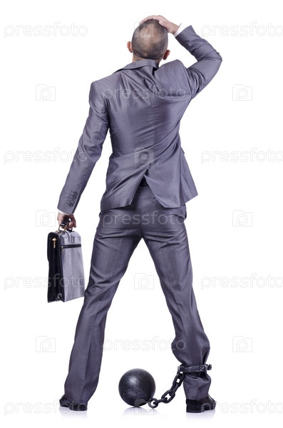 Бизнесмен с наручниками, изолированный на белом