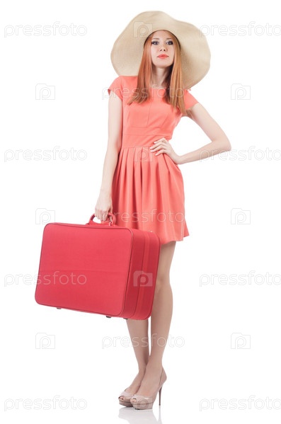 Женщина готовится к отдыху на белом фоне