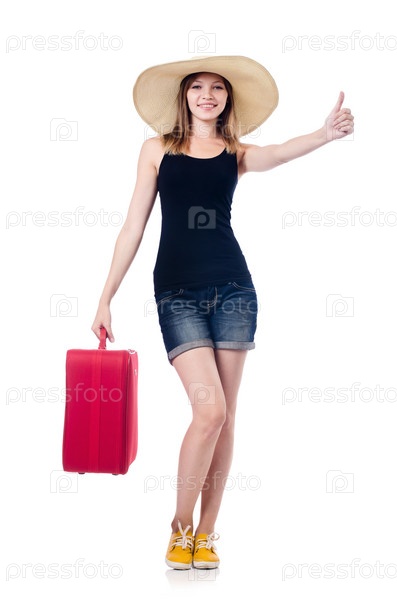 Женщина готовится к отдыху на белом фоне