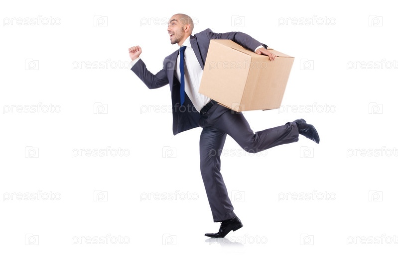 Бизнесмен с коробками, изолированный на белом