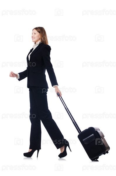 Путешествующая деловая женщина на белом фоне