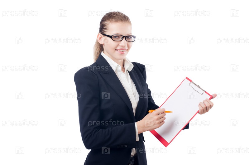 Женщина с планшетом, изолированная на белом фоне
