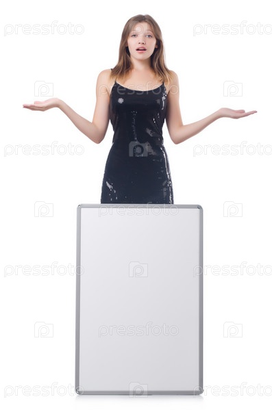 Молодая женщина с пустым плакатом