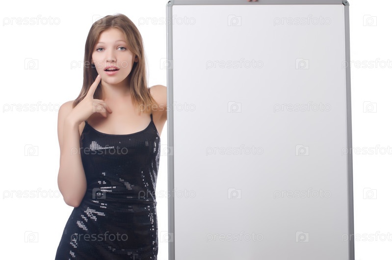 Молодая женщина с пустым плакатом