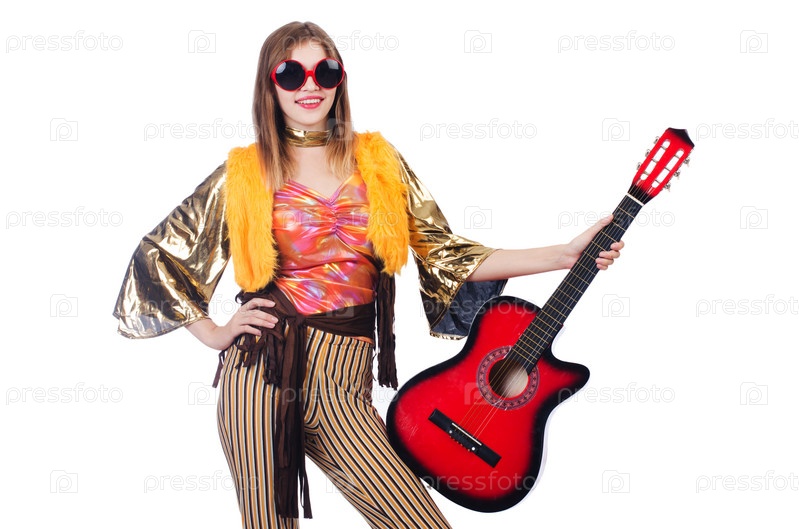 Гитарист, изолированный на белом фоне