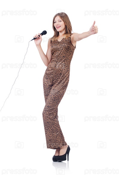 Певица с микрофоном на белом фоне