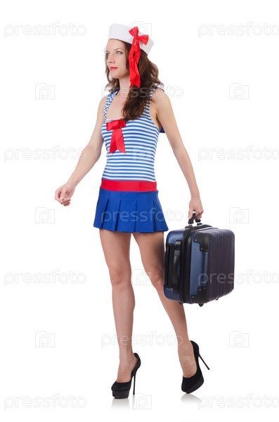 Женщина готовится к отдыху на белом фоне
