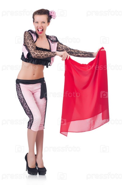Женщина тореадор, изолированная на белом