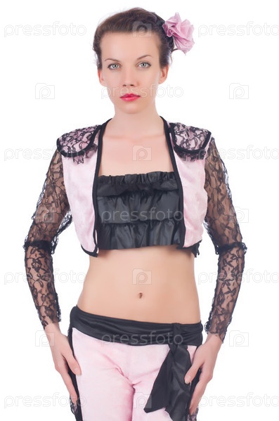 Женщина тореадор, изолированная на белом
