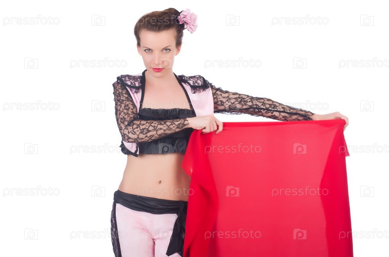Женщина тореадор, изолированная на белом фоне