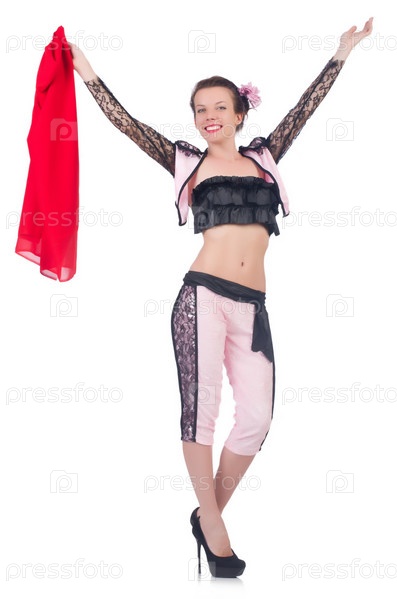Женщина тореадор, изолированная на белом фоне