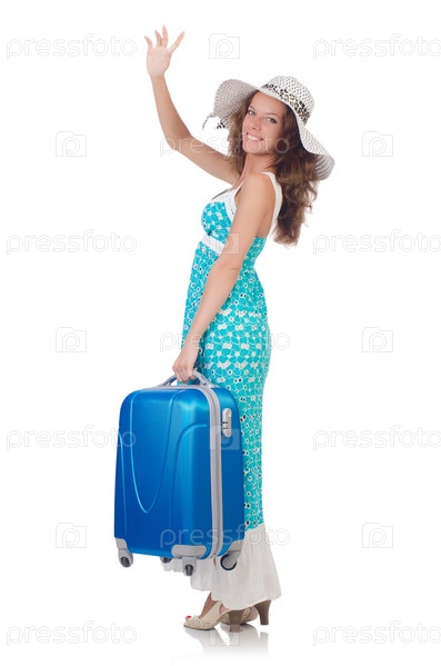 Женщина готовится к отдыху на белом фоне