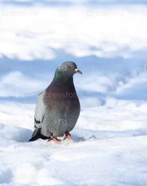 Голубь на снегу
