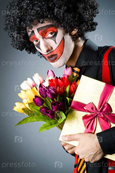 Печальный клоун с цветами