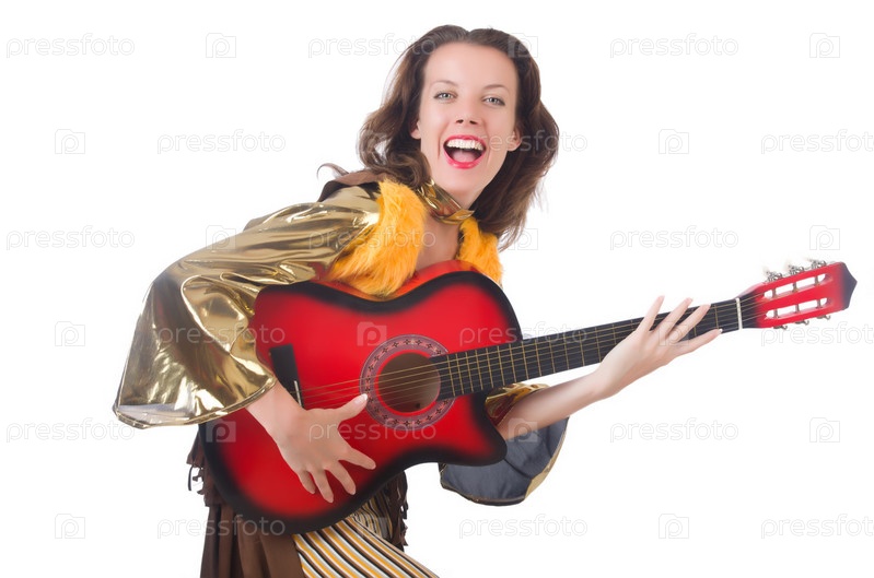 Женщина с гитарой в мексиканской одежде