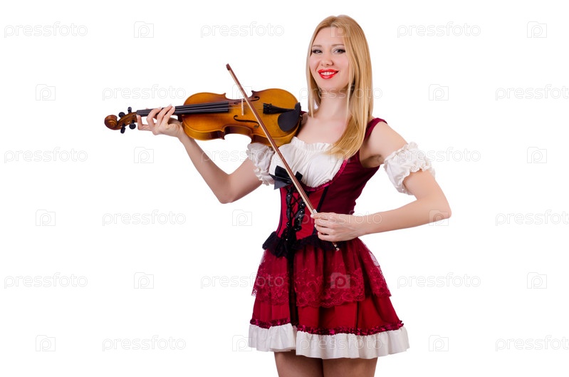 Девушка играет на скрипке на белом фоне