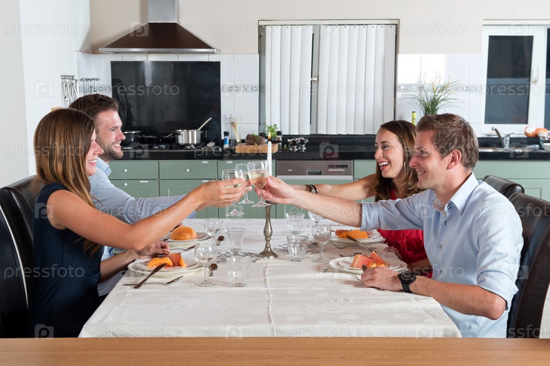 Друзья наслаждаются ужином дома