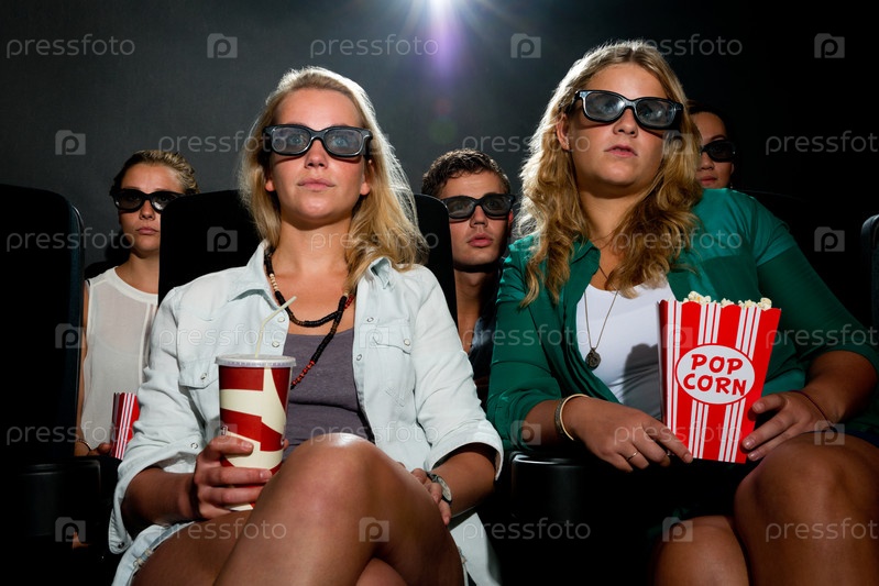 Друзья смотрят 3D-фильм в кинотеатре