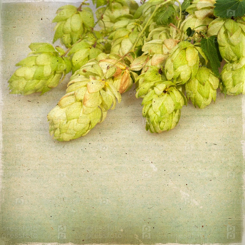 Спелые шишки хмеля. Старинный фон с текстурой бумаги
